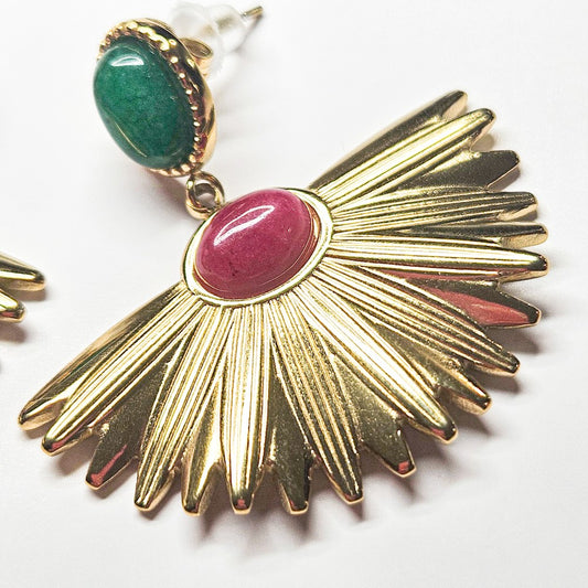 Boucles d'oreilles SIRAH fleur avec perle verte et fuchsia