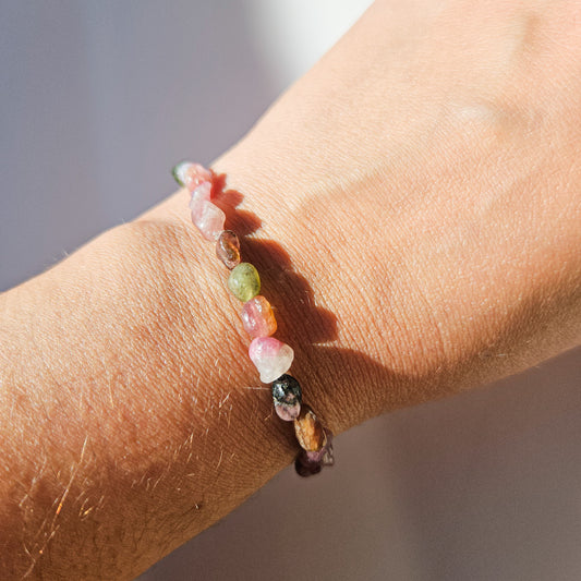 Bracelet en pierre de Tourmaline multicolore – Équilibre et protection