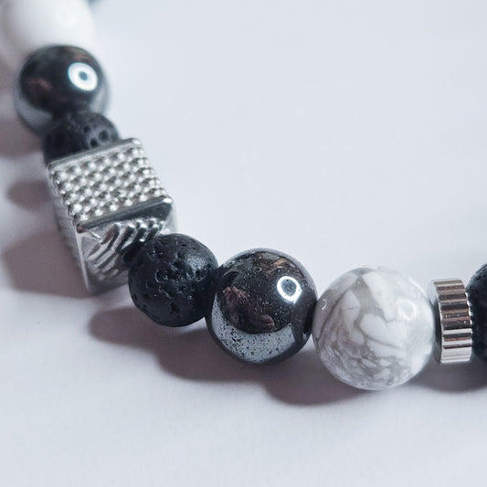 Bracelet homme hématite - howlite - pierre de lave : ancrage, calme, stabilité