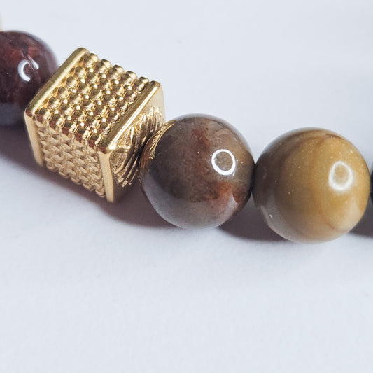 Bracelet homme Œil de tigre – Bois fossile – Agate fossile : protection, stabilité, équilibre