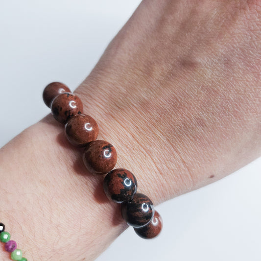 Bracelet Obsidienne Mahogany argenté- ancrage, stabilité, protection