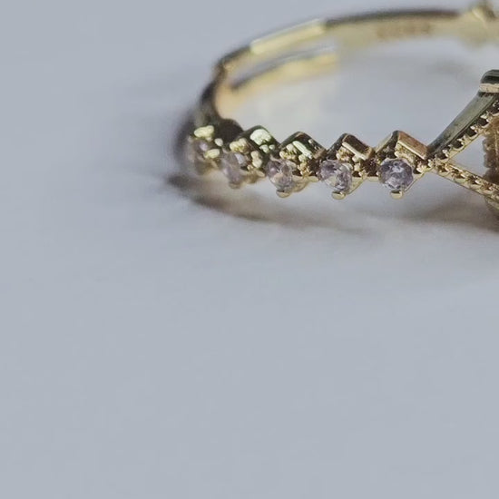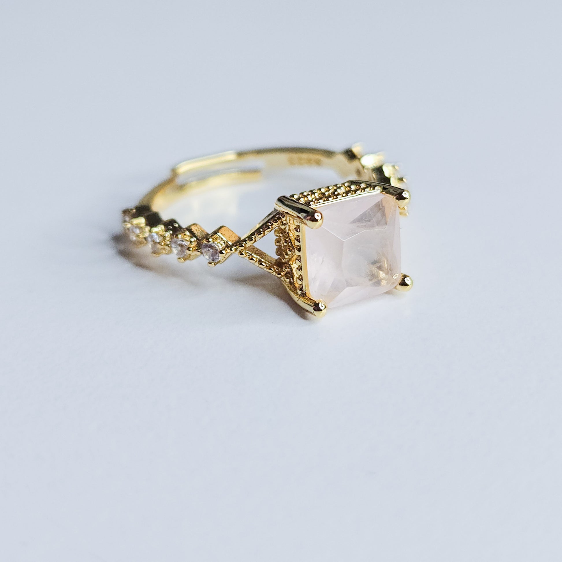 Bague en Quartz rose sertie d'une pierre qualité extra et de zircons.