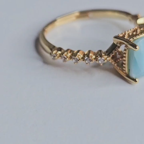 Bague Aigue‑Marine sertie d'une pierre qualité extra et de zircons.