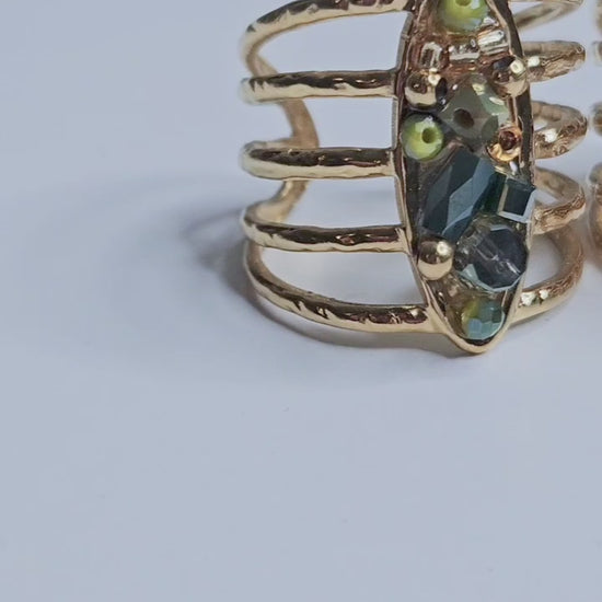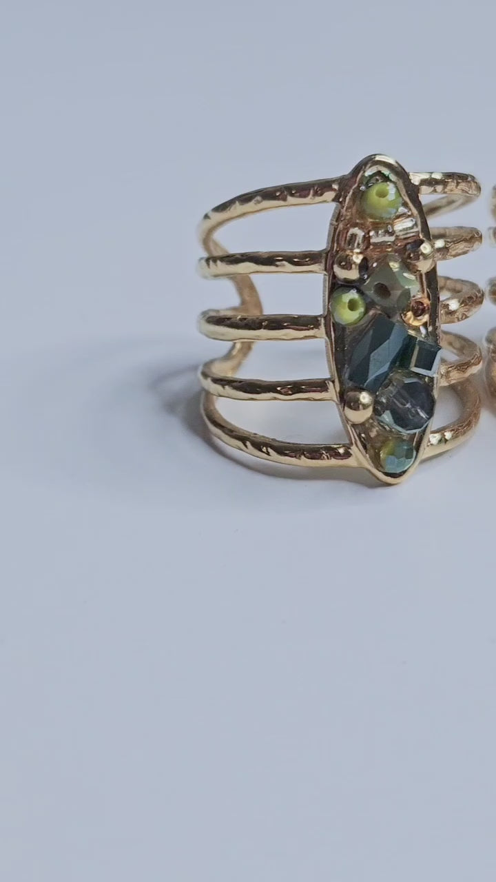 Bague dorée cristaux perlés Sarah multicolore