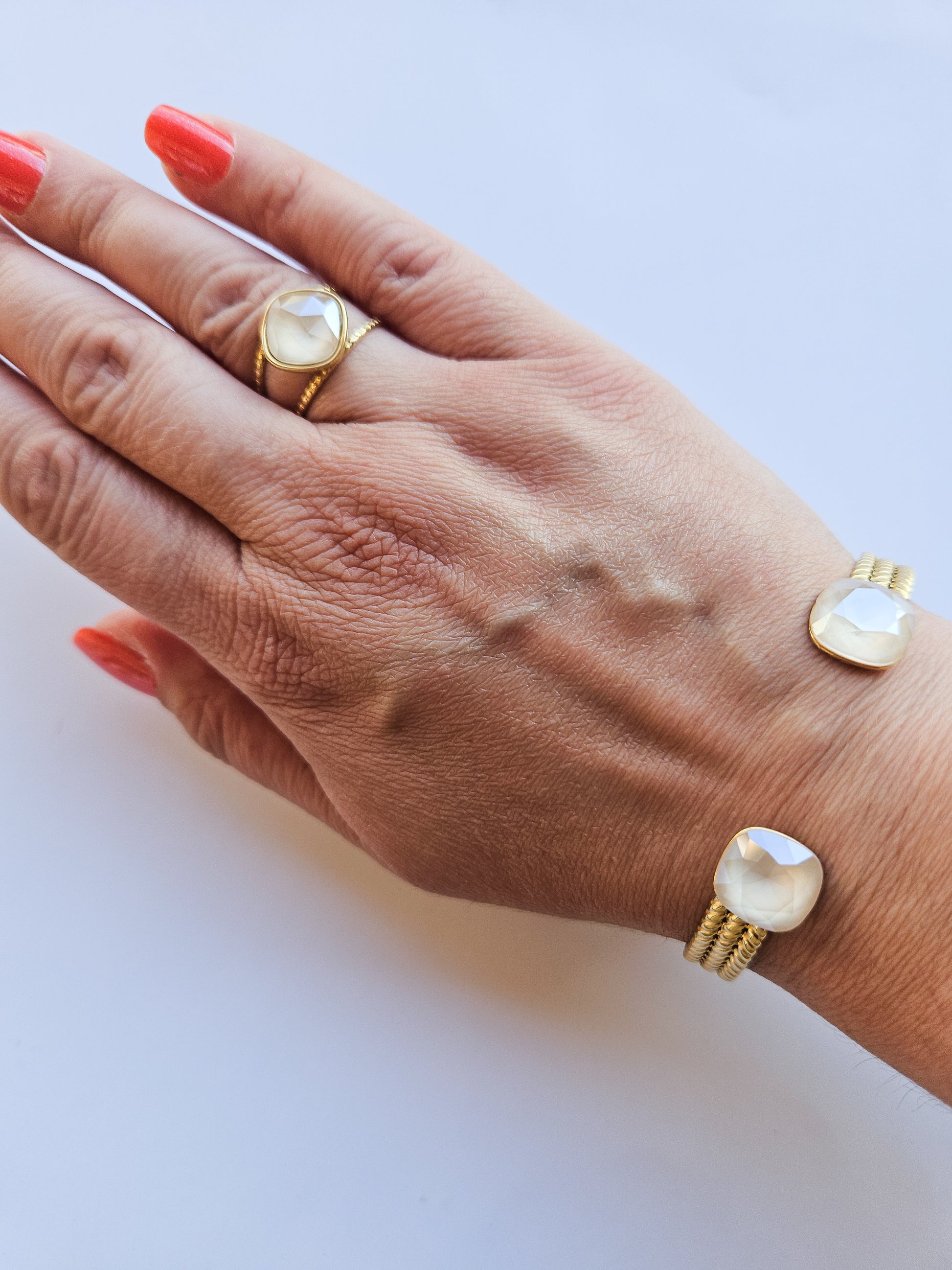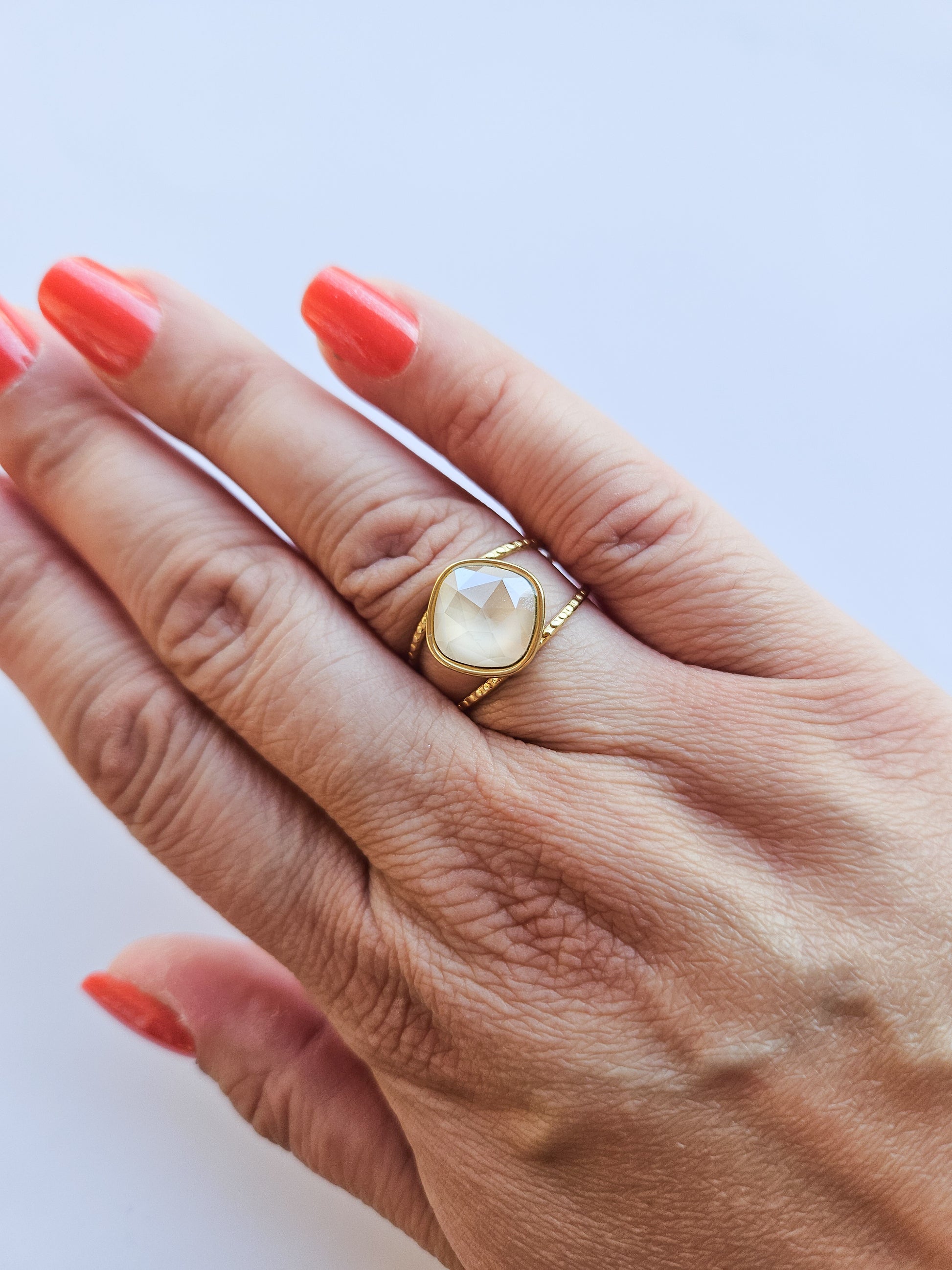 Dimensions : hauteur de la bague 13 mm, cristal 10 x 10 mm.