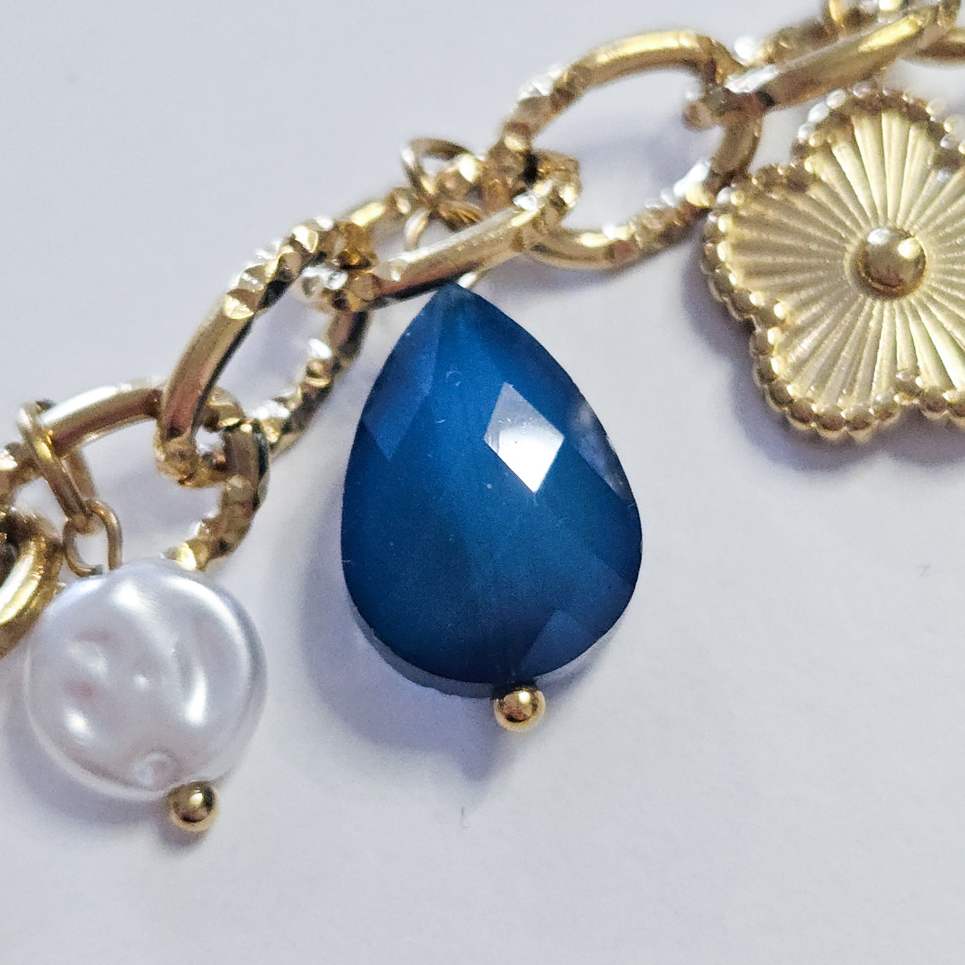 Bracelet chaîne dorée charms perles et éclats bleus LAGONIA - Acier inoxydable