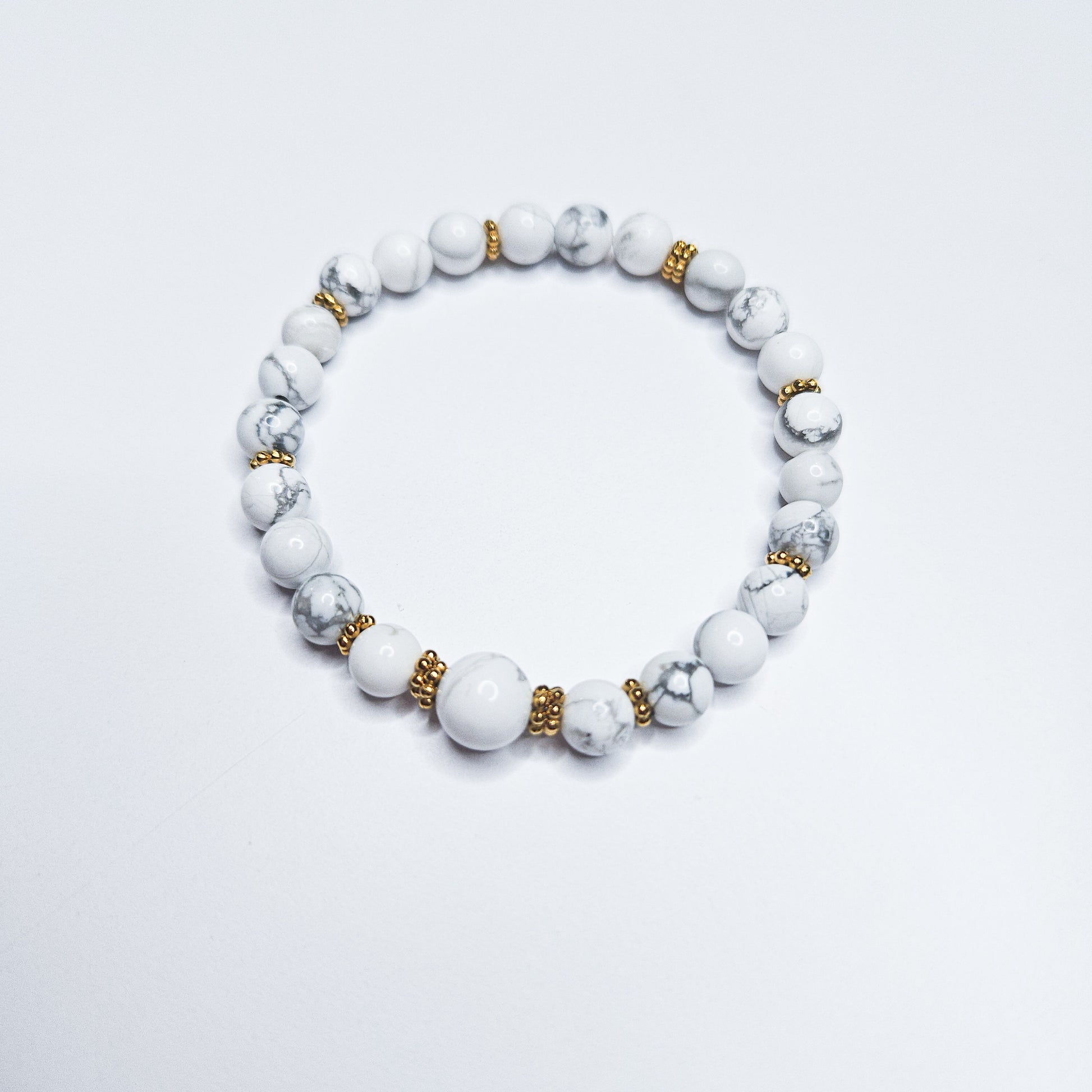 Perles de 6 mm+ une centrale en 8 mm montées sur fil élastique
