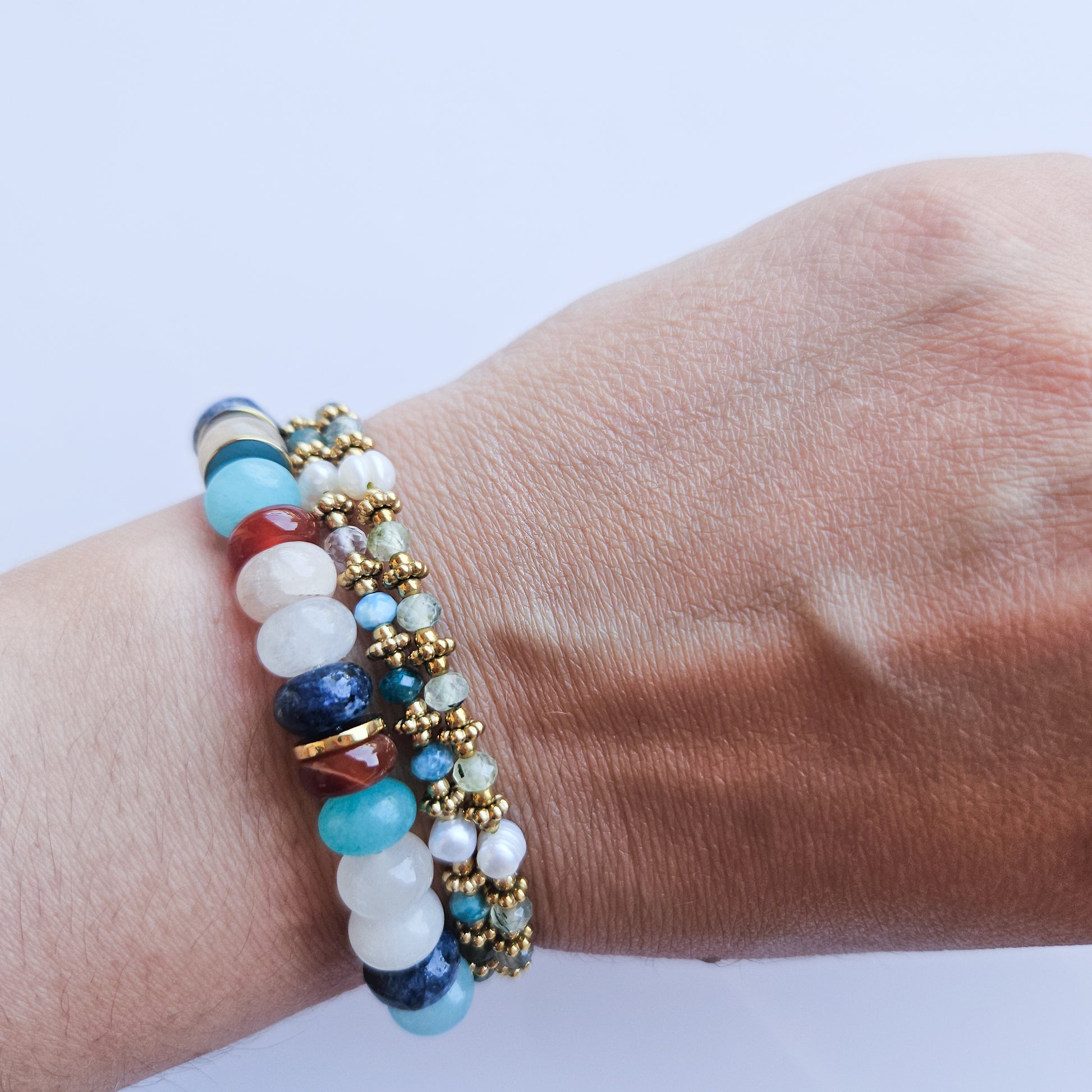 Chaque pierre étant unique, formes et teintes peuvent légèrement varier d’un bracelet à l’autre.