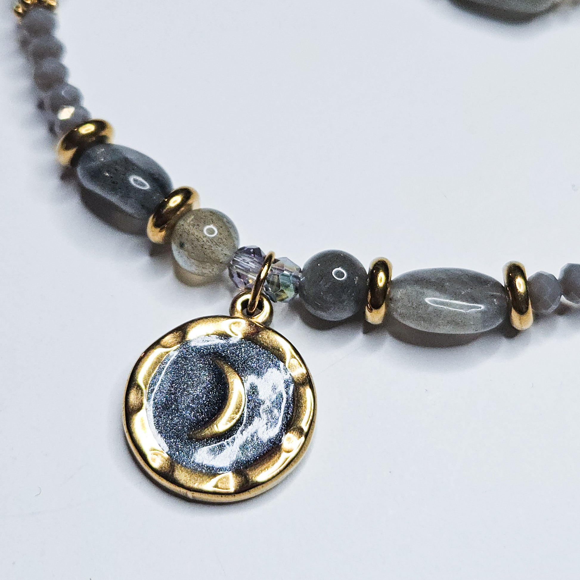 Pierre minérales avec perles fantaisies et acier inoxydable
