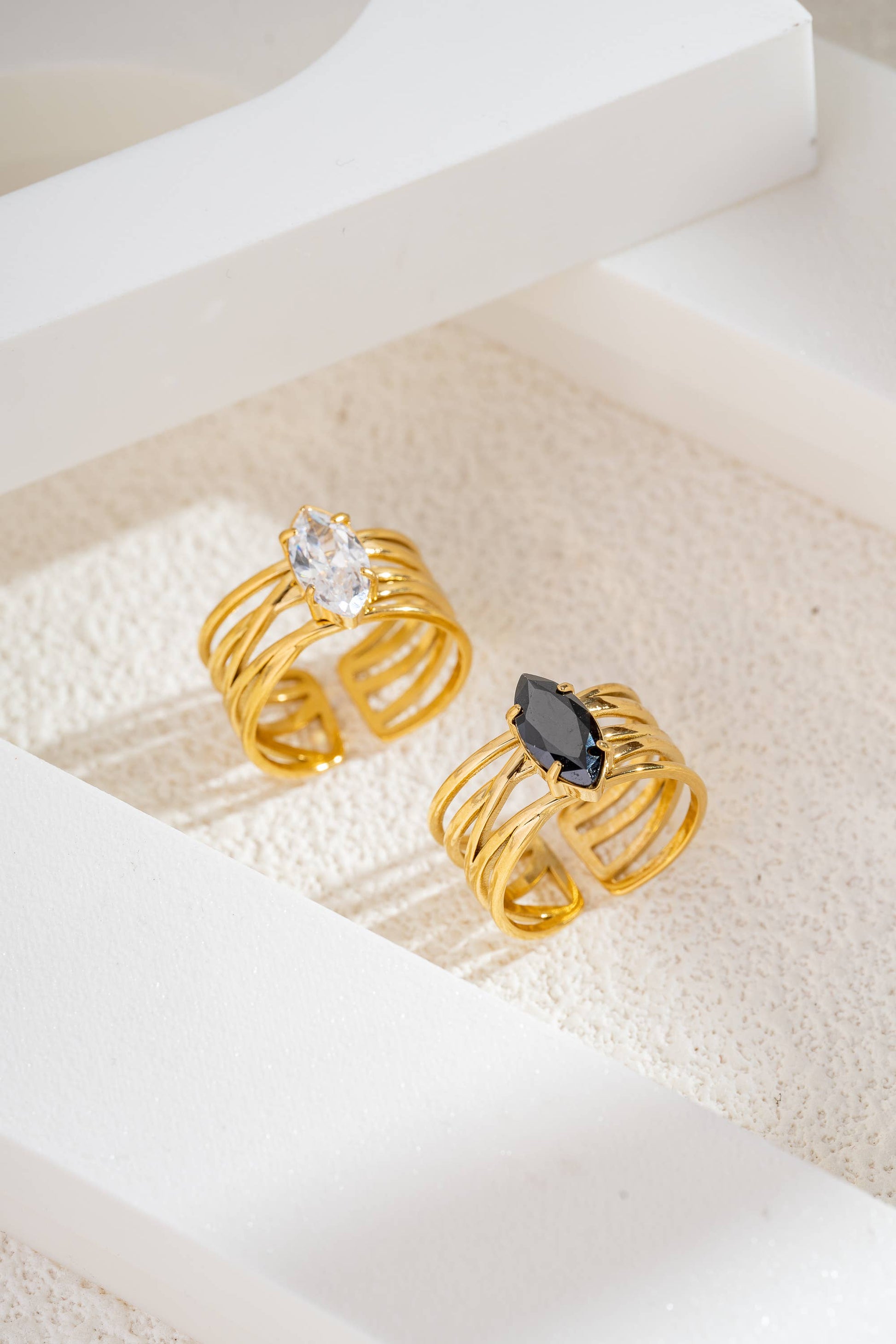 This gold stainless steel ring captivates with its bands.: Noir